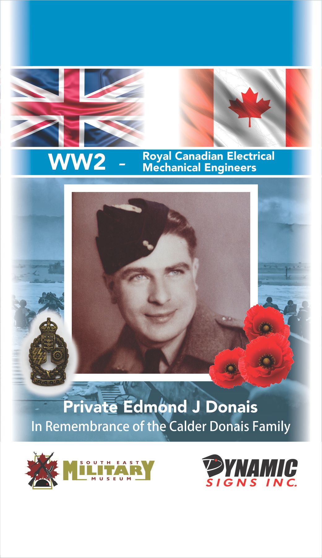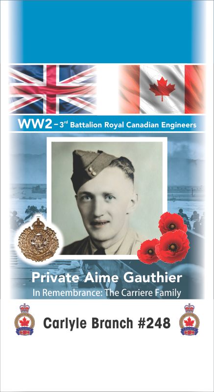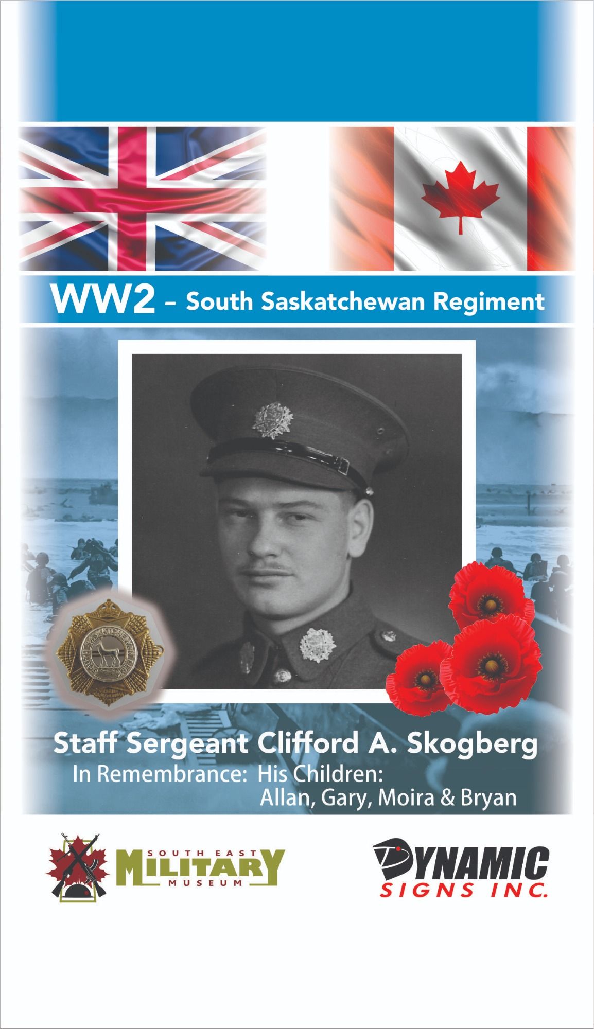 We are in the process of putting up banners to memorialize Members that have served in the Canadian Forces or Police Services from the area and display them in the Cities, Towns and Villages of the Southeast.